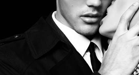 Passionate couple, romantic lovers concept. Sexy elegant people in tender passion.