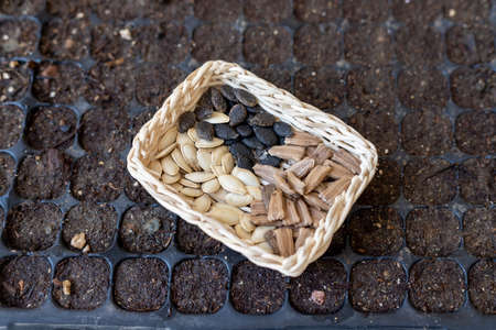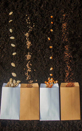 Seed Planting: A Variety of Crops for Future Harvest. Selective focus.