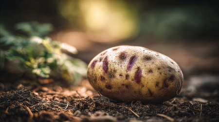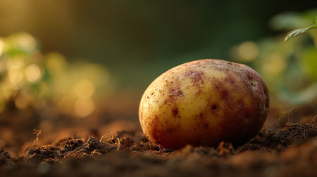 Freshly Harvested Potato Resting on Soil Ready for a Nutritious Meal