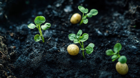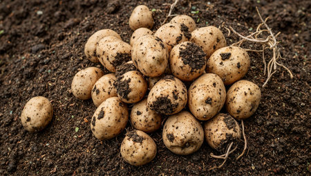 Freshly Harvested Potatoes Resting on Rich Soil in the Garden