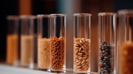 Plant seeds in test tubes for genetics research. Laboratory Analysis of Agricultural Commodities. Generative AI illustrator