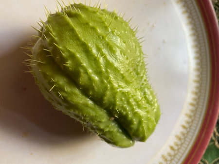Cucumis anguria, cackrey, maroon cucumber, West Indian gherkin and West Indian gourd. Deco-Fruits yellow and green colors. Front view.