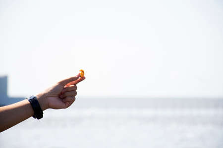 Close up of man holding cigarette while rolling tobacco on the street. Lifestyle concept