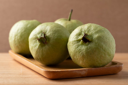 Fresh guava on wooden background, Tropical fruit high vitamin C