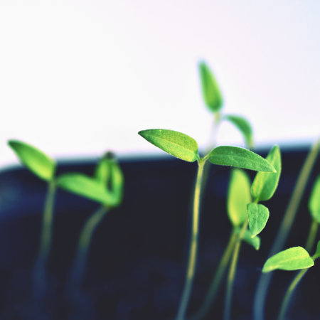 Green sprouts of young greenery macro shooting, top view