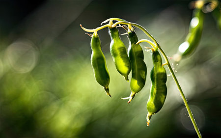 Close-Up of Green Bean Pods Detailing Growth Process and Textural Elements in Nature