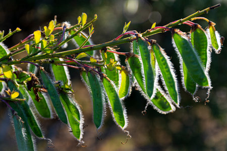 Close up of Robinia pseudoacacia Tree pods. Robinia pseudoacacia is commonly known as black locust. Polish nature concept.