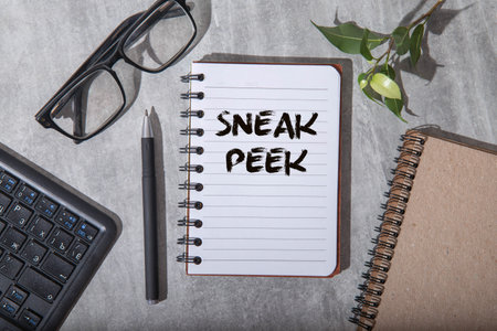 Sneak peek message written on ripped torn paper with wooden background. Conceptual sneak peek symbol. Copy space.