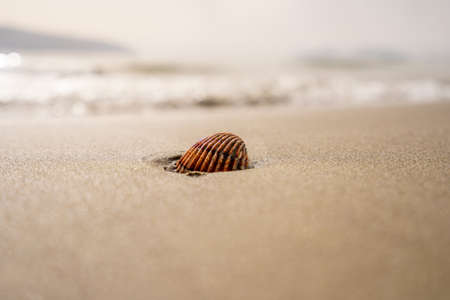 Beautiful seashell on the beach at sunset. Shallow DOF