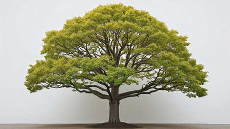 Lush green tree with sprawling branches creating a captivating image of nature's grandeur. AI generated image
