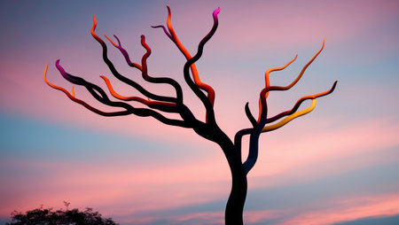 AI Generated. Colorful Abstract Tree at Dusk with Dramatic Background