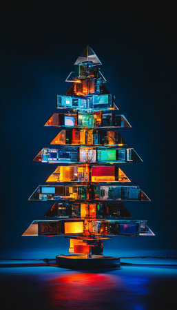 Futuristic abstract christmas tree made from recycled electronics a sustainable holiday concept