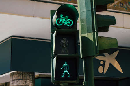 Seville Spain August 21, 2021 Street sign or road sign, erected at the side of or above roads to provide information to road user in the downtown area of Seville