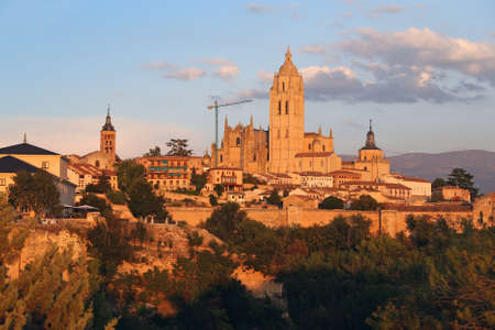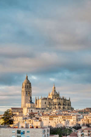 Cityscape. View of Segovia old town with Segovia Cathedral