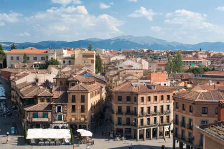 Cathedral, aerial views of the Spanish city of Segovia. Ancient Roman and medieval city