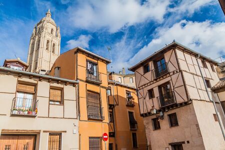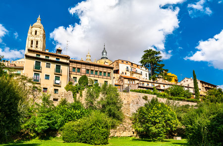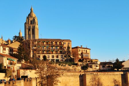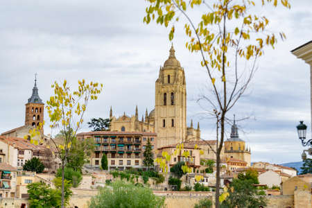 Segovia old town cityscape and Segovia cathedral, Spain