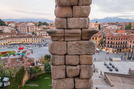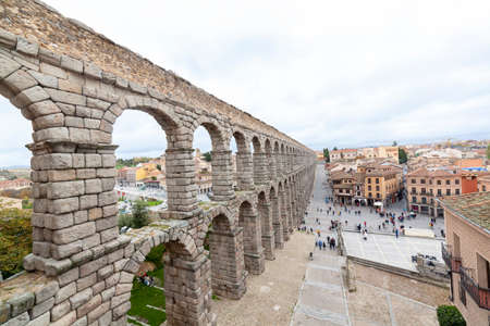SEGOVIA, SPAIN - OCTOBER 20, 2017: View of the Roman Aqueduct in Segovia, Spain