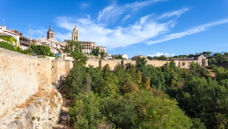 Panorama view of the old wall and town of Segovia, with some of its main monuments to be recognised.