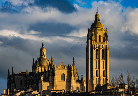 SEGOVIA, SPAIN - OCTOBER 19, 2021. The Holy Cathedral Church of Our Lady of the Assumption and of San Frutos de Segovia, known as the Lady of the Cathedrals for its size and elegance. In Spain. Europe