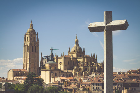 Segovia, Spain. Gothic cathedral in sunny day