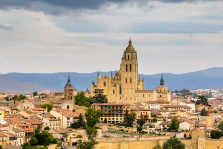 Segovia, Spain. Panoramic view of the historic city of Segovia skyline with Catedral de Santa Maria de Segovia, Castilla y Leon.