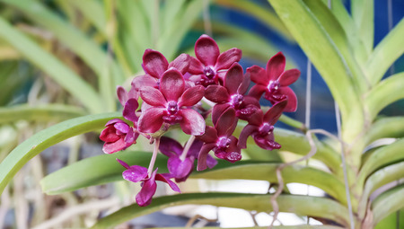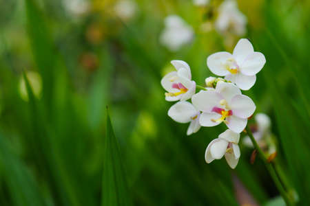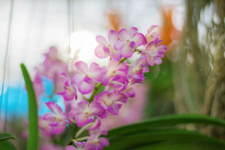 Beautiful small Orchid flower in orchid garden at winter or spring day. Orchid flower for postcard beauty and agriculture design. , in full bloom in farm, on nature blur background