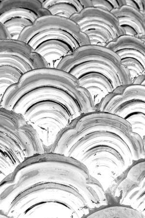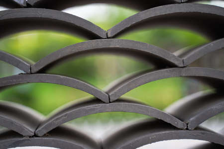 Close up of a colorful pattern on the roof of a Buddhist temple