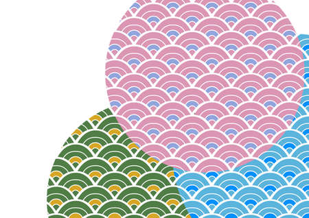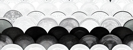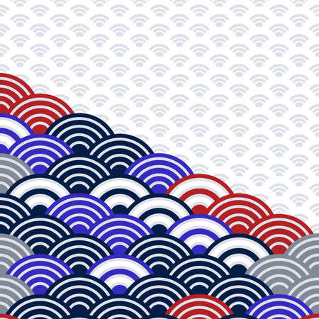 wave blue grey black brown colors card banner design for text abstract scales simple Nature background with japanese circle pattern. Vector illustration