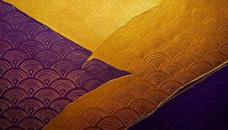 Detailed Japanese pattern background modern in gold. Gold geometric cover design, poster, card, template.