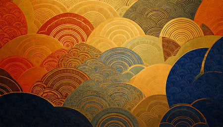 Abstract colorful pattern featuring swirling circles in warm autumn tones, ideal for modern interior design, print, or digital media