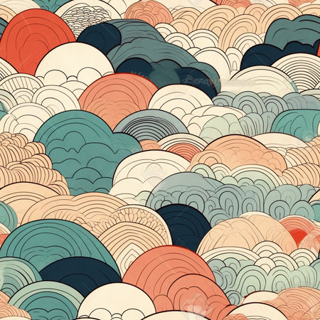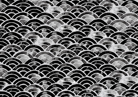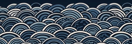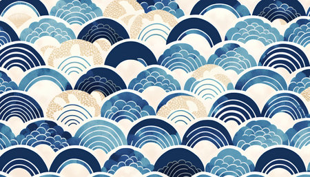 Generative AI Seamless wavy pattern. Seigaiha print in polka dot style. Grunge texture.