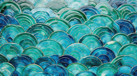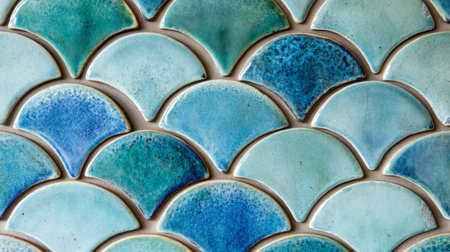 This stunning ceramic tile design features a blue and green scale pattern, perfect for modern interiors or artistic projects, showcasing beauty and texture.
