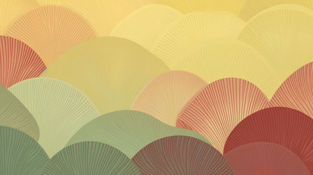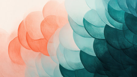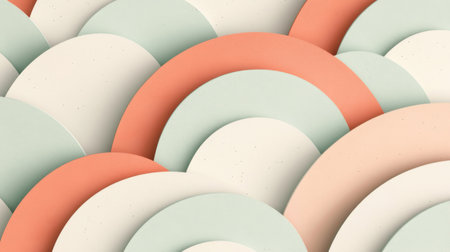Soft pastel arcs in mint and coral hues are arranged in a minimalist pattern, creating an aesthetically pleasing visual experience that evokes tranquility.