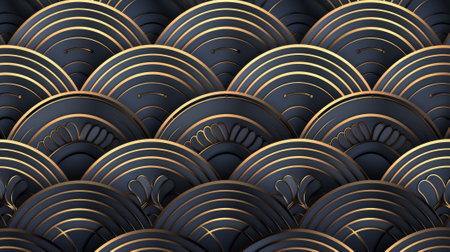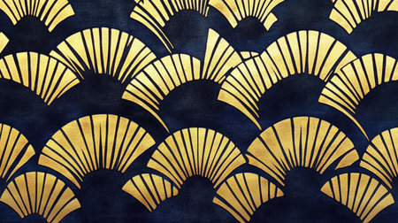 Elegant navy and gold wallpaper featuring a repetitive fan pattern for a modern interior