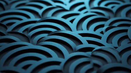 Abstract pattern resembling fish scales with a shimmering blue finish, creating a textured and reflective surface for artistic backgrounds