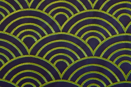 Golden Embroidery Thread Pattern On Black Fabric Close-Up