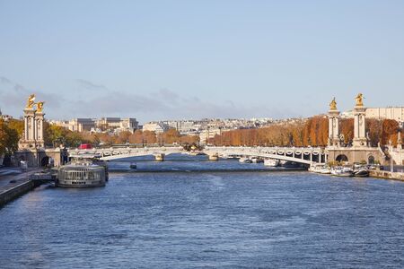 Alexander III bridge view and Seine river in a sunny autumn day in Paris, France