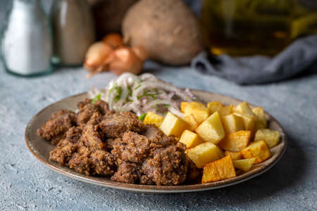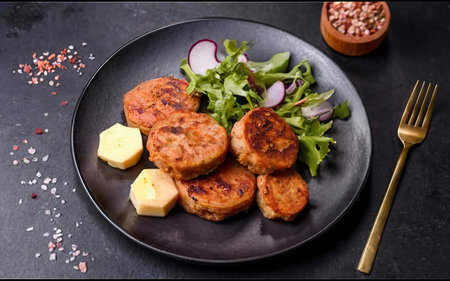 vegan lentil cutlets without meat with potatoes and salad. healthy eating