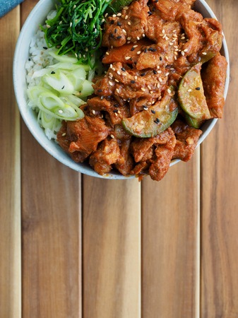 Korean food Jeyuk-deopbap, Spicy Stir-fried Pork with Rice