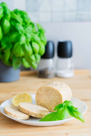 Vegan food ready to cook. Seitan is similar to meat but vegan