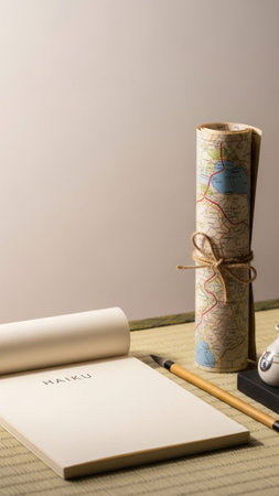 tea ceremony utensils displayed on a tatami mat, created with generative ai