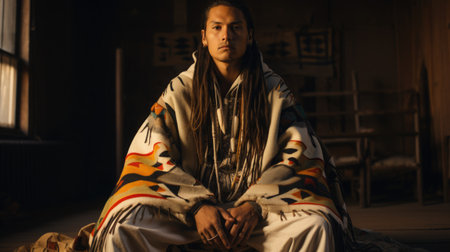 modern street fashion look with elements of authentic Native American Indian. National Native American Heritage Month concept