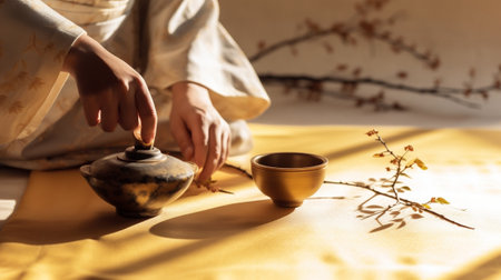 Tea ceremony, deliberate movements, savoring the moment