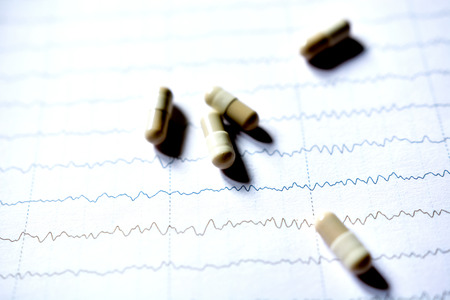 Cardiogram on a sheet of paper close-up. Texture of pulsed waves.
