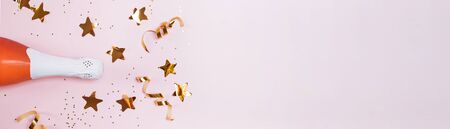 A group of friends are having fun in beautiful chiffon dresses with champagne and confetti, preparing for the New Year.