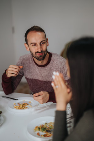 A close-up shot of a person bringing a fork with food to their mouth. The focus on the mouth and utensil captures the act of eating, tasting, and enjoying a meal.