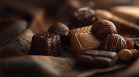 Delectable assortment of dark and milk chocolates on a textured surface backdrop