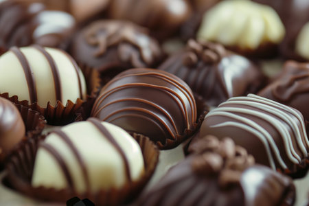 Indulgent assortment of delicious chocolates tempting the taste buds with rich flavors.