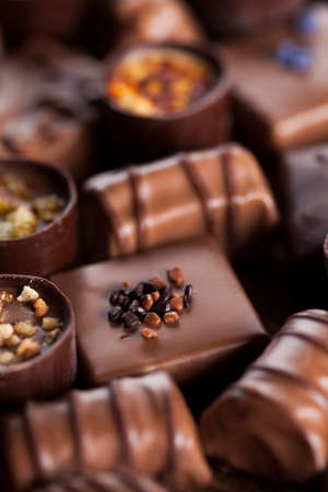 Assorted chocolate pralines, close up