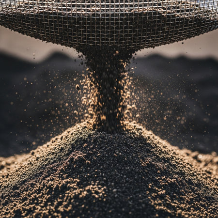 A highly detailed, centered square image capturing the moment rich, dark compost soil flows effortle
